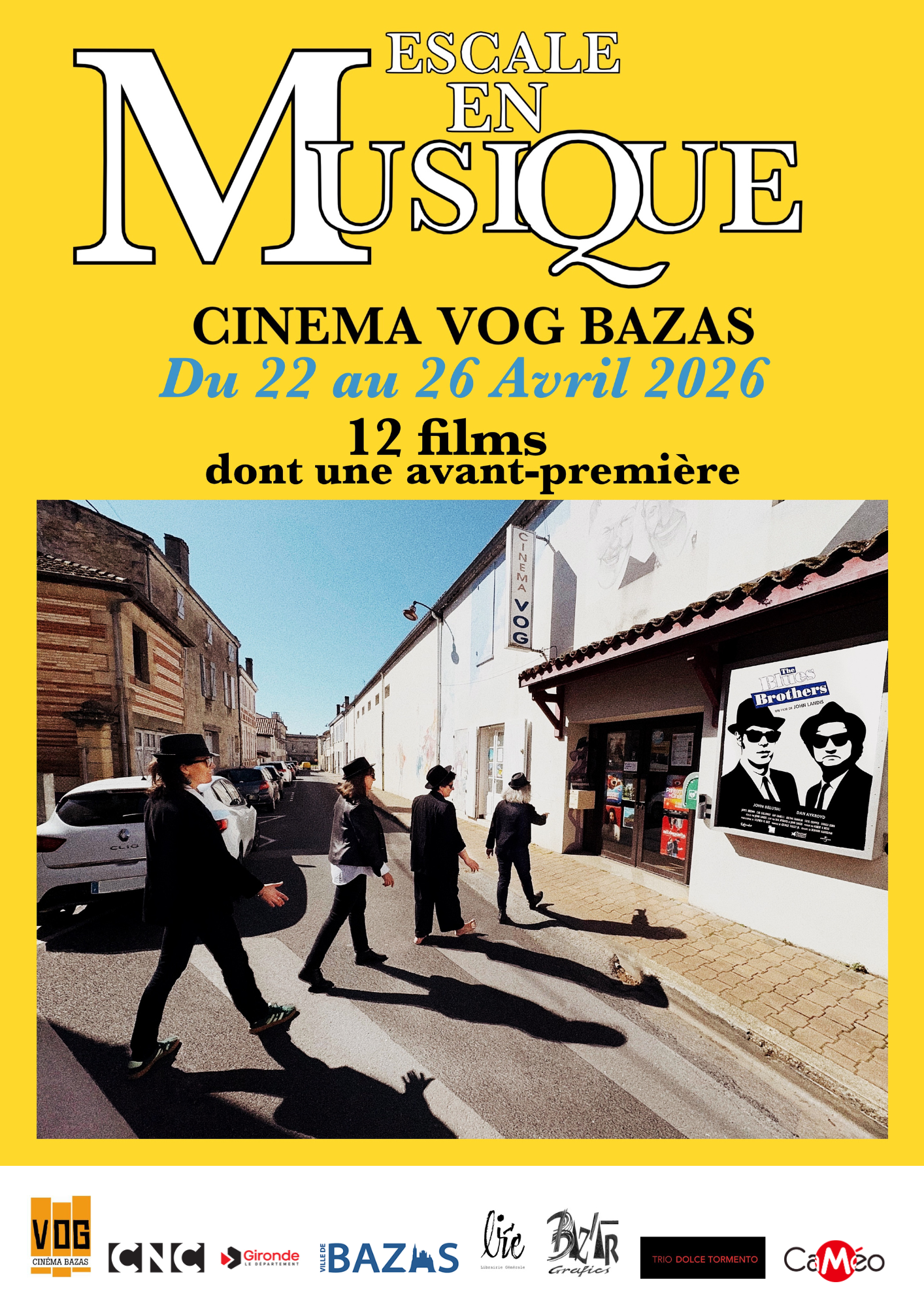 Du 22 au 26 avril 2026, les bénévoles et l’équipe du Vog vous proposent un focus autour de la musique au cinéma. Durant 5 jours, vous pourrez (re)découvrir sur grand écran les Beatles, Bruce Springsteen, Vivaldi, les Blues Brothers, le groupe irlandais Kneecap, vous laissez bercer par des musiques traditionnelles américaines, du blues, hip-hop, rock ou de la musique alternative ou encore plonger dans une sorte de « Woodstock environnemental » !