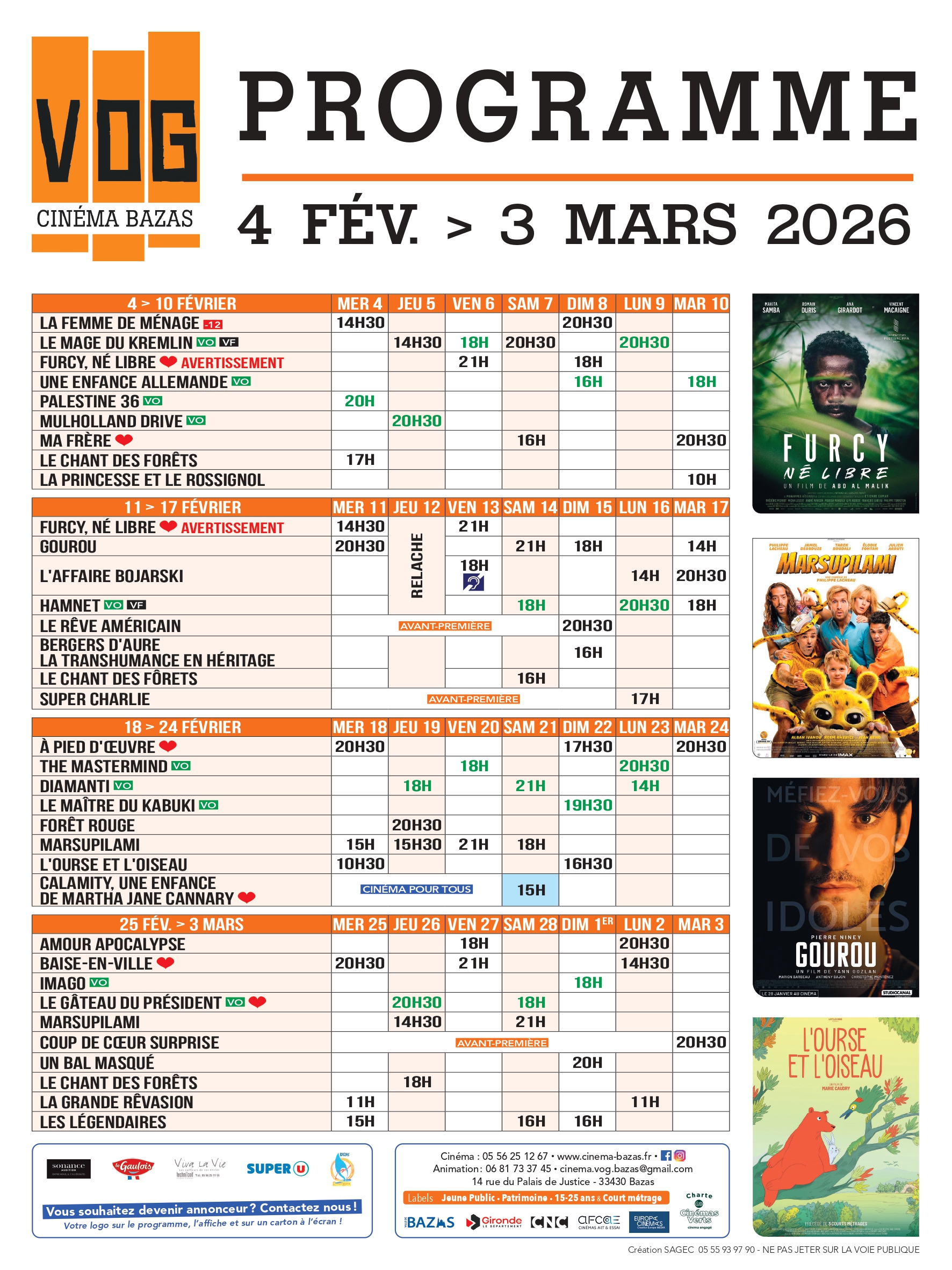 nouveau programme de votre cinéma du 4 février au 3 mars
